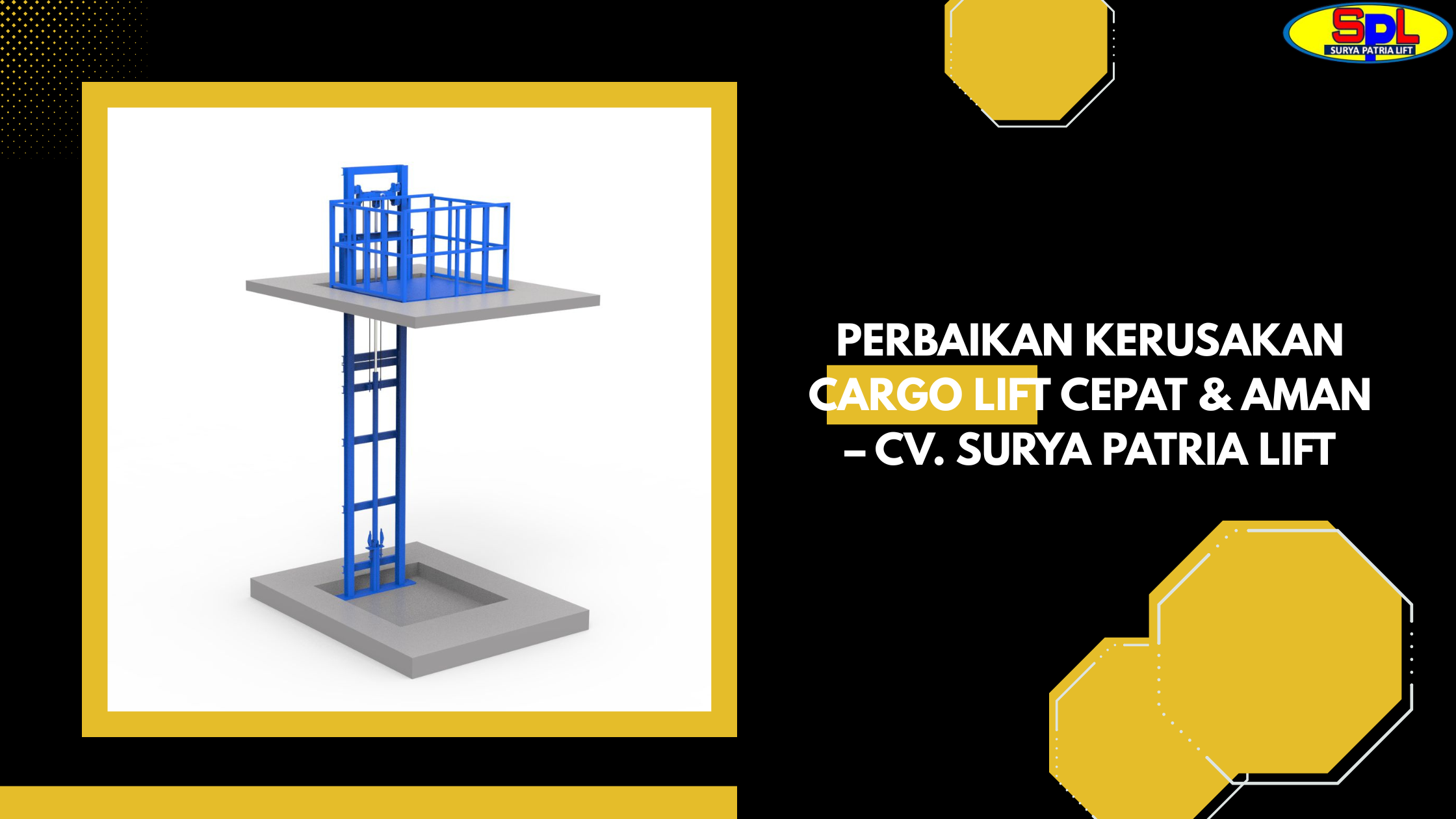 Jangan biarkan cargo lift yang rusak mengganggu operasi bisnis Anda lebih lama. Dengan layanan profesional dari CV. Surya Patria Lift, Anda dapat yakin bahwa Perbaikan kerusakan cargo lift akan ditangani dengan cepat, aman, dan standar tertinggi. Kami berkomitmen untuk menjaga agar fasilitas Anda berjalan lancar.